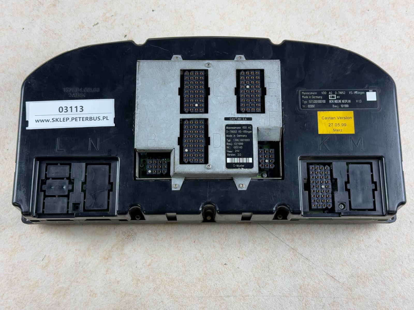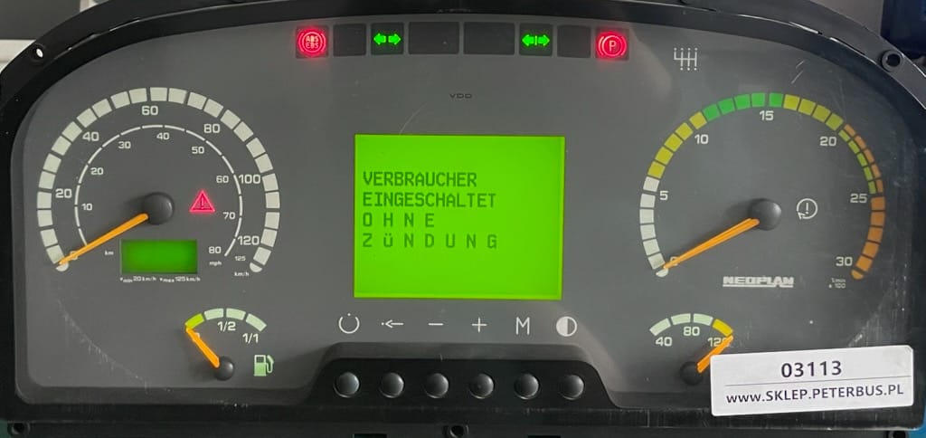 Deska rozdzielcza, zegary, pulpit, panel zegarów NEOPLAN N316 SHD, CAVTAN 2.6, rok prod. 1999, wersja 2.0, typ 1366.10010001, VDO typ 1571.0301000100, MOKI MIDLINE NEOPLAN V 1.3, 100% sprawny, GWARANCJA