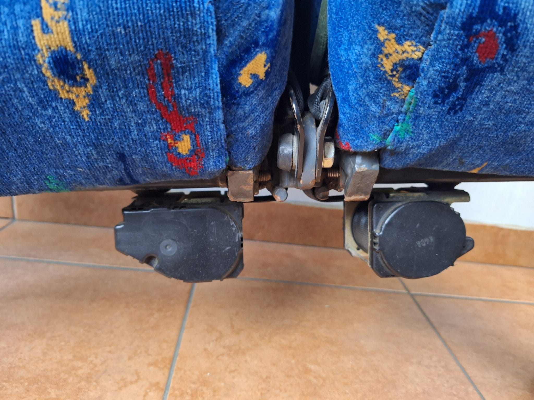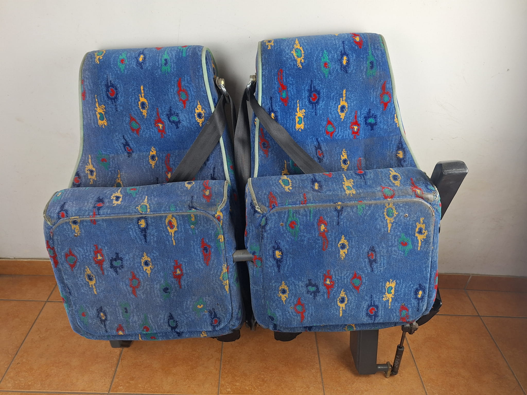 Fotele składane pionowo, podwójny fotel pilota, z pasami i siłownikami do siedzisk