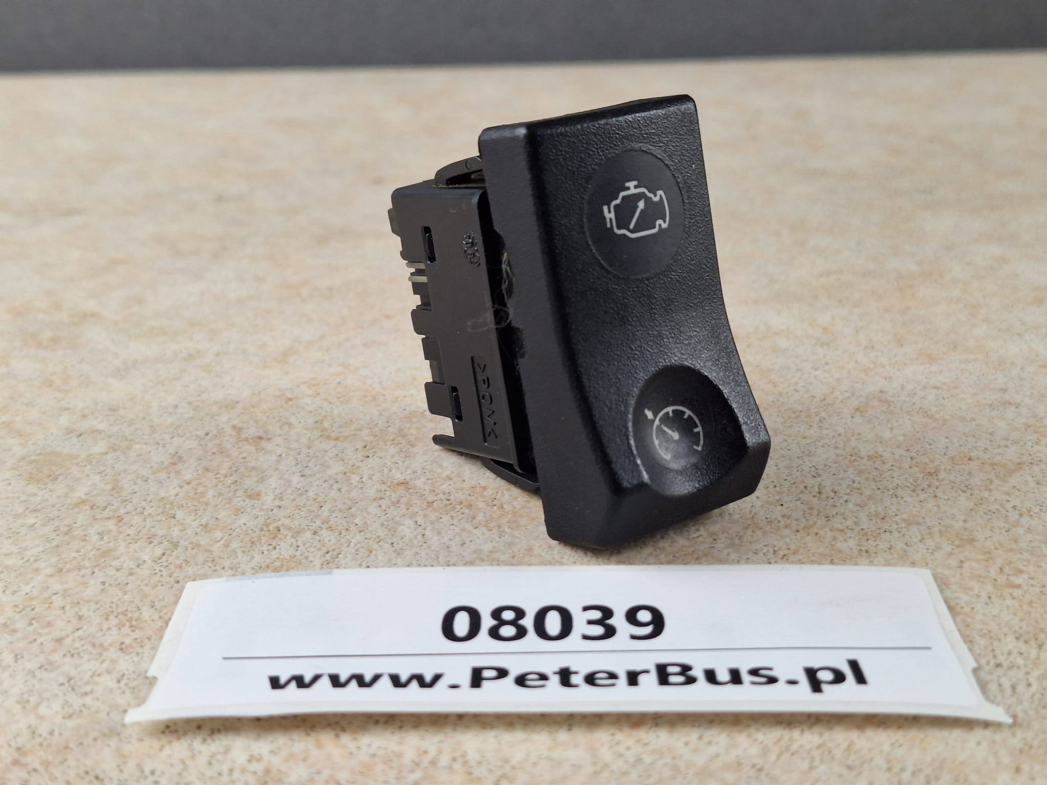 Klawisz, przycisk, włącznik DAV 24618, symbol silnika i zegara (tempomat), 8 PINów