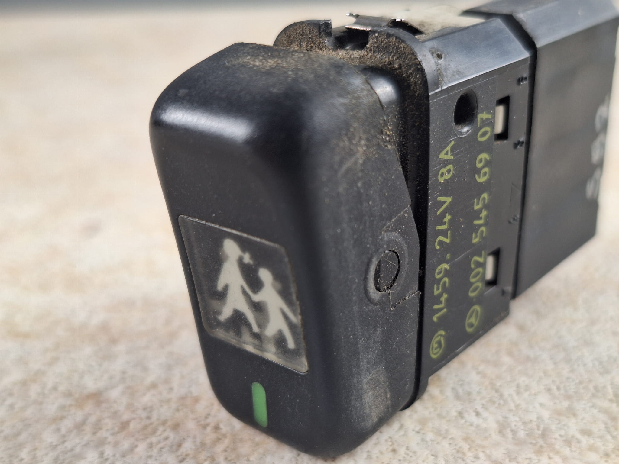 Klawisz, przycisk, włącznik Mercedes 1459.24V 8A, nr 002 545 69 07, symbol dzieci
