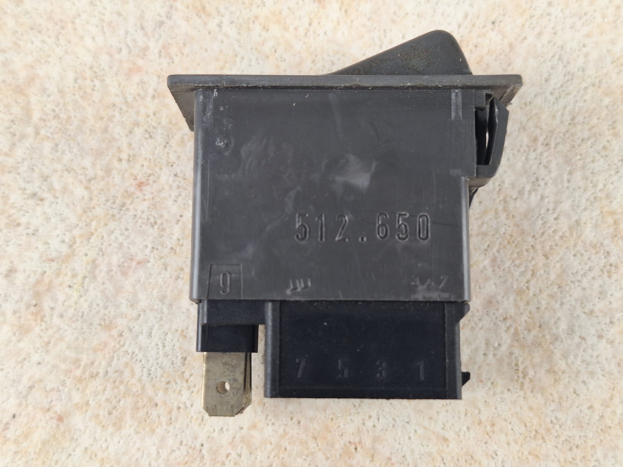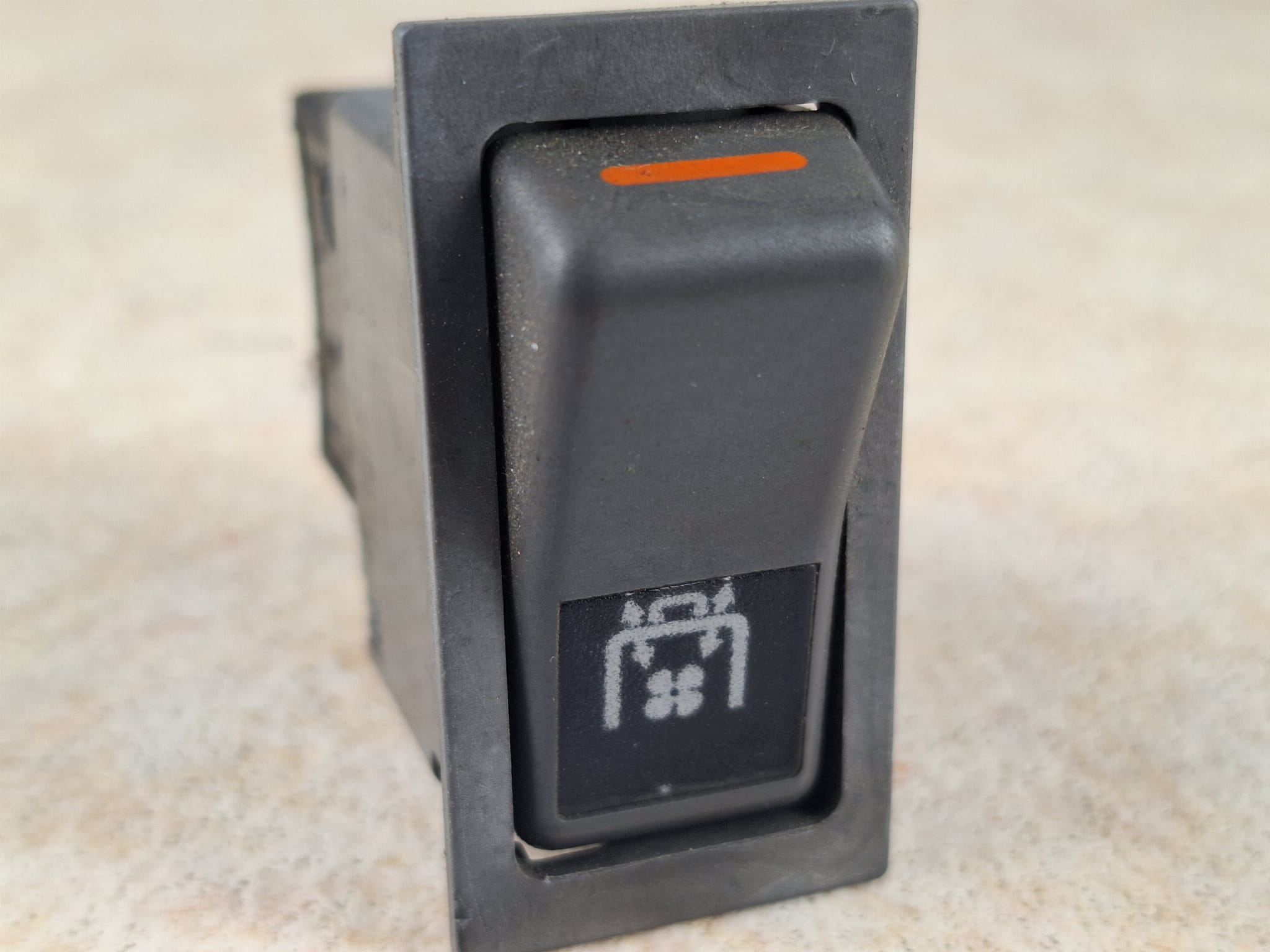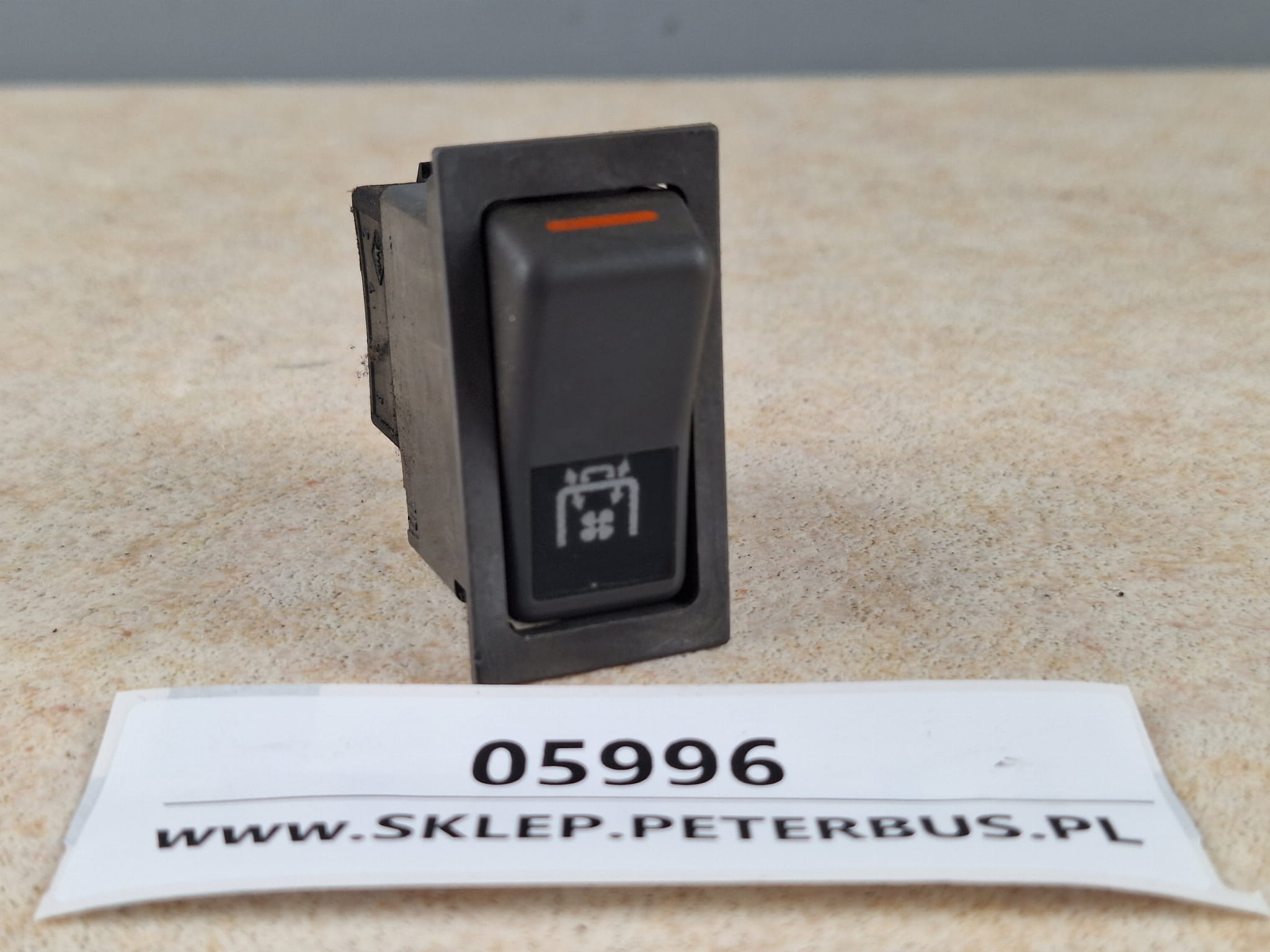 Klawisz, przycisk, włącznik nawiewów autobusu IVECO nr 512.650, symbol wiatraczka
