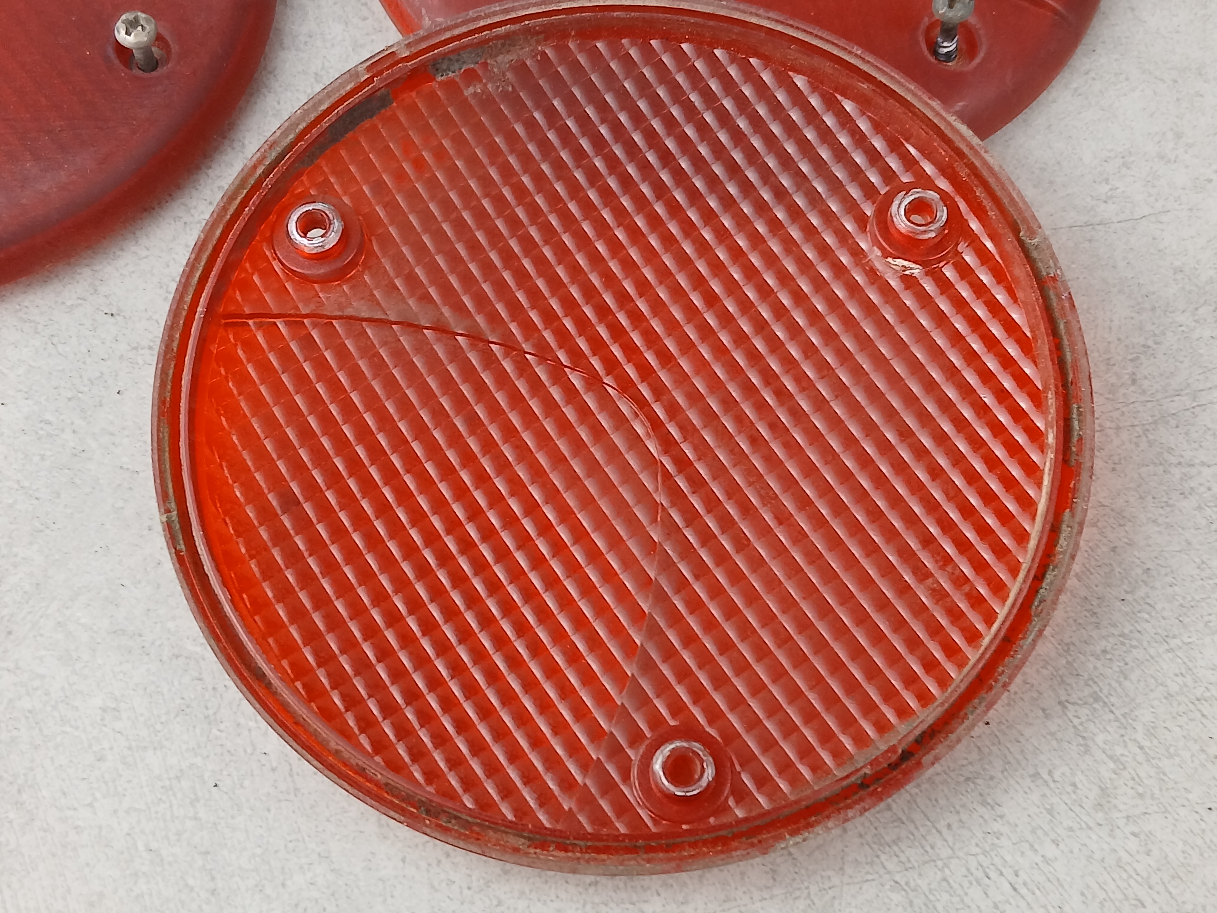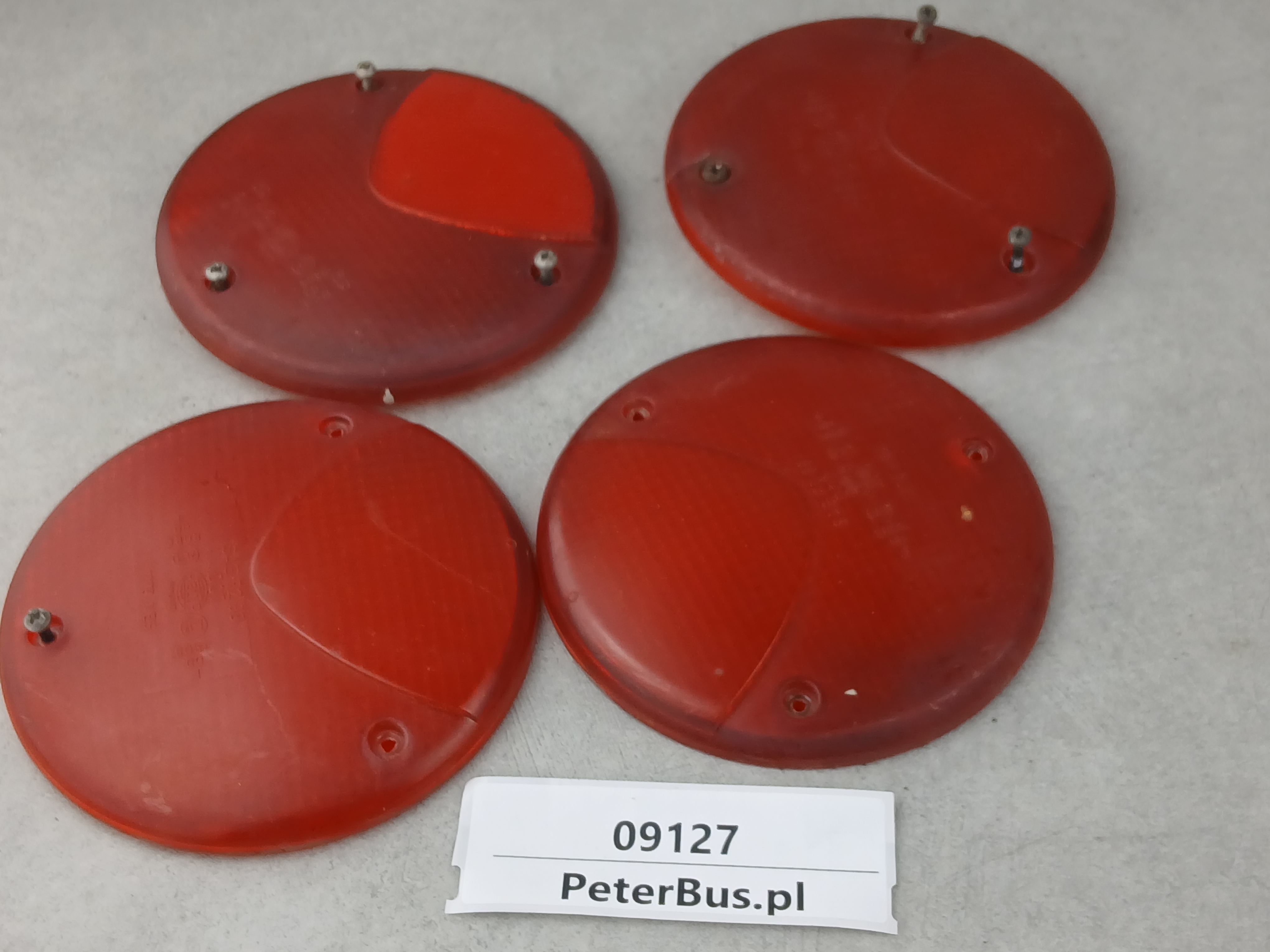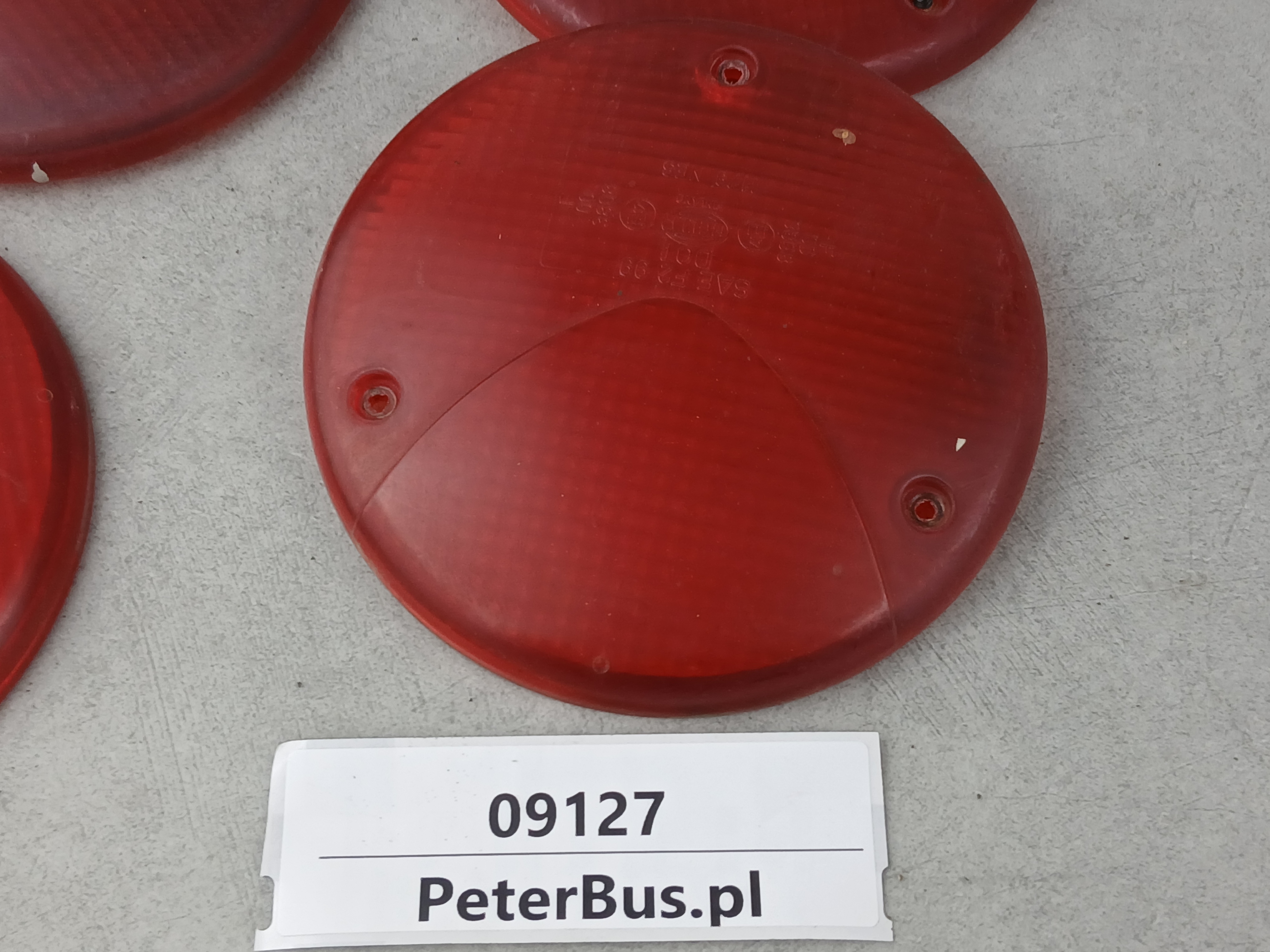 Klosz lampy tył BOVA Futura, TEMSA SAFARI, okrągły, fi 12 cm, montaż na 3 śruby, HELLA 1179 B, klosz czerwony, SAE F2 99