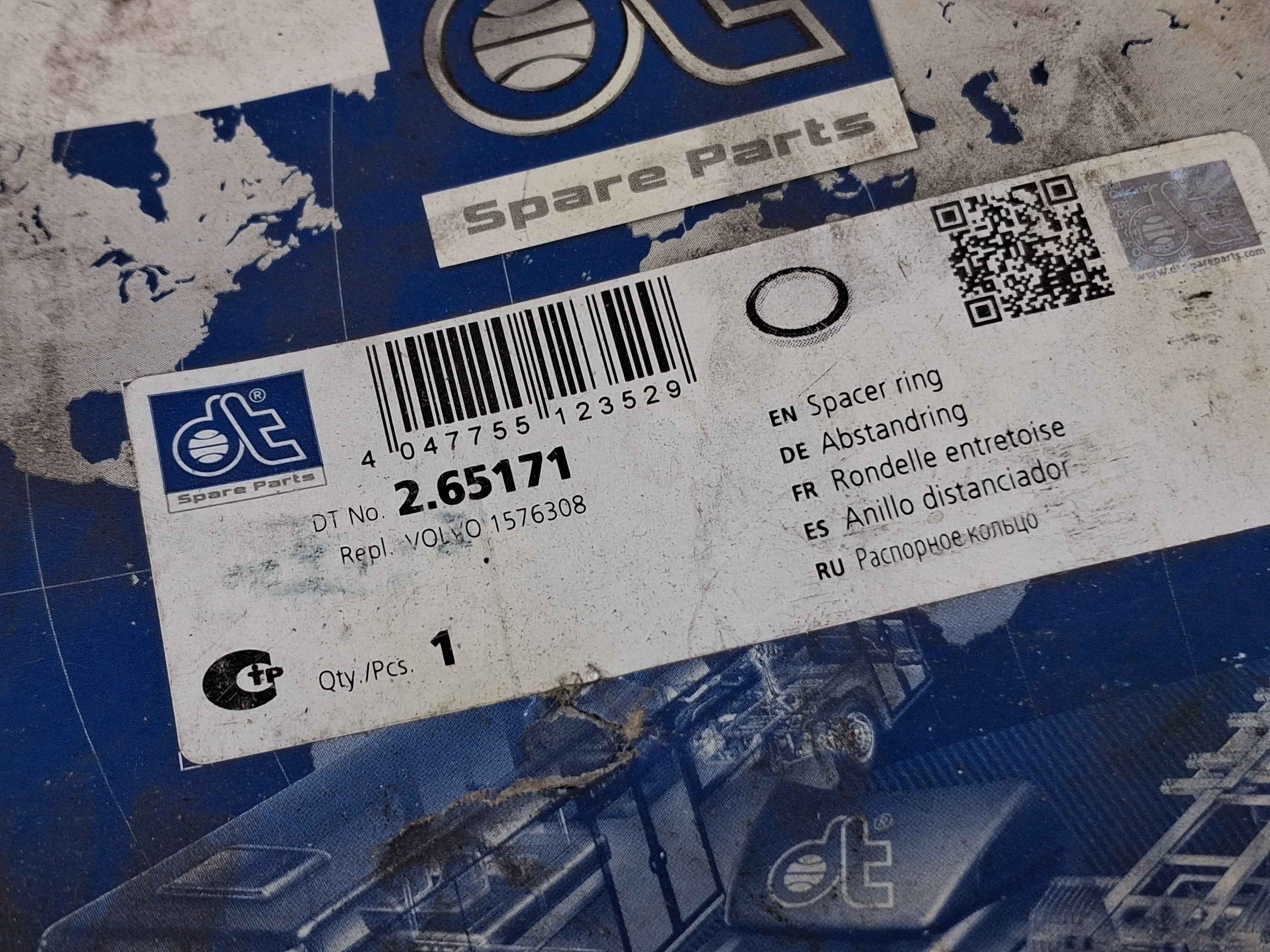 Pierścień dystansowy VOLVO 1576308, DT 2.65171, wymiary 105x168x24 mm, DT 80015082 - NOWY