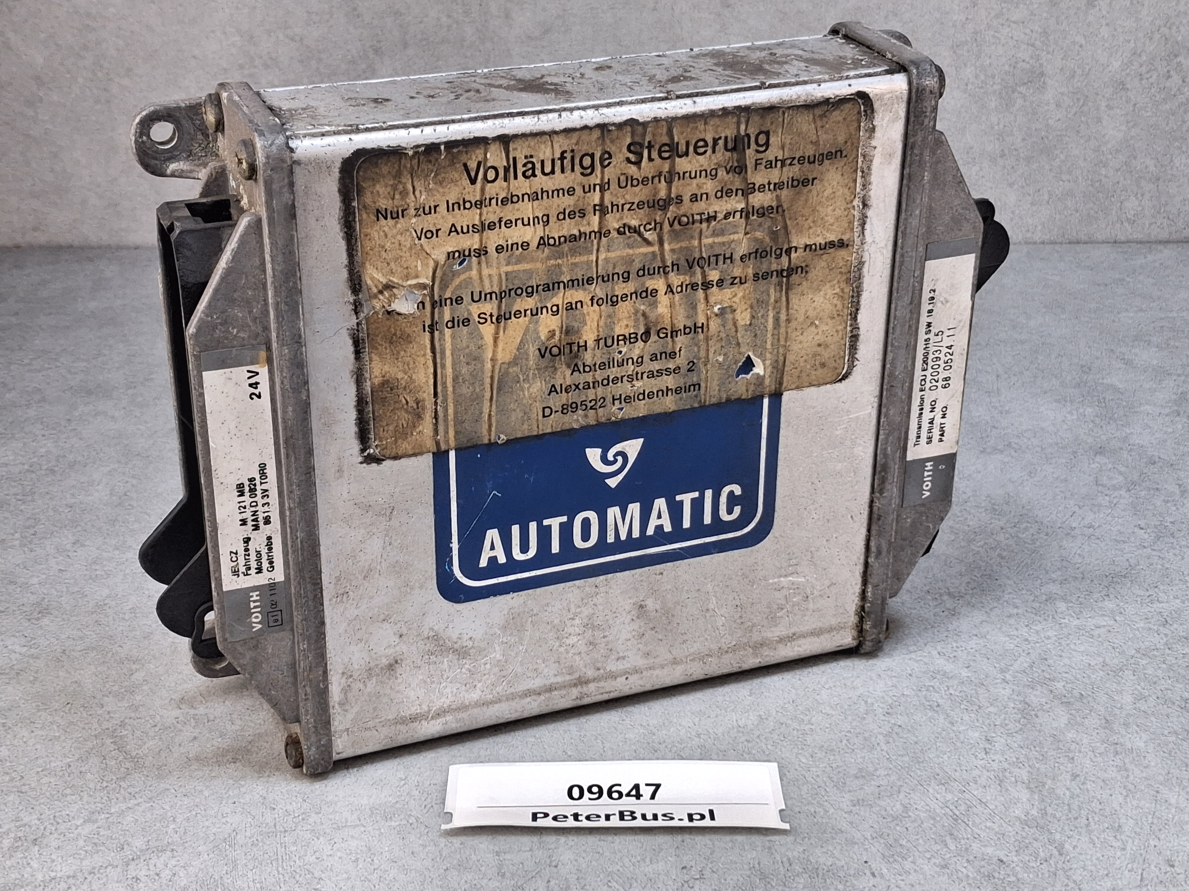 Sterownik automatycznej skrzyni biegów VOITH do autobusu JELCZ M 121 MB, silnik MAN D 0826, skrzynia biegów 851.3 3V T0R0, Transmission ECU E200/H5 Sw 18.19.2, nr 68.0524.11